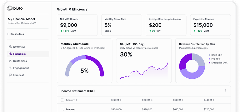 Bluto.ai is the intelligent financial modeling platform built specifically for SaaS founders. We transform weeks of spreadsheet work into minutes of guided setup, enabling entrepreneurs to create investor-ready financial projections without financial expertise.