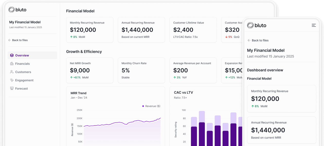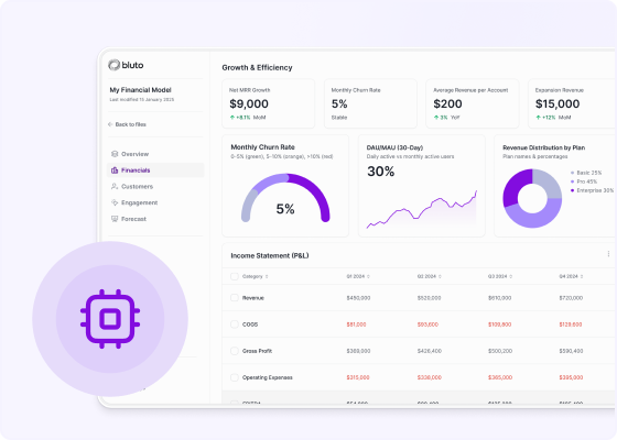 Model enterprise sales cycles, seat-based pricing, and annual contracts. Build projections that show your path to predictable revenue.